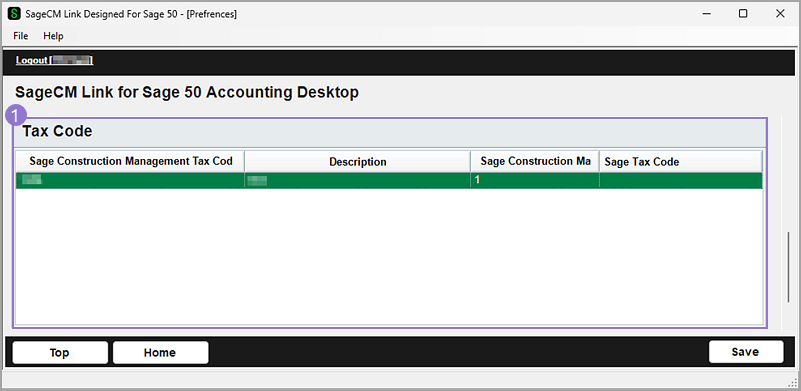 When exporting Sage Construction Management financial transactions, you must map Sage Construction Management tax codes to the corresponding Sage 50 Canada tax codes. This mapping must be completed before running the Sync Wizard, and the tax codes must match between Sage Construction Management and Sage 50 Canada.