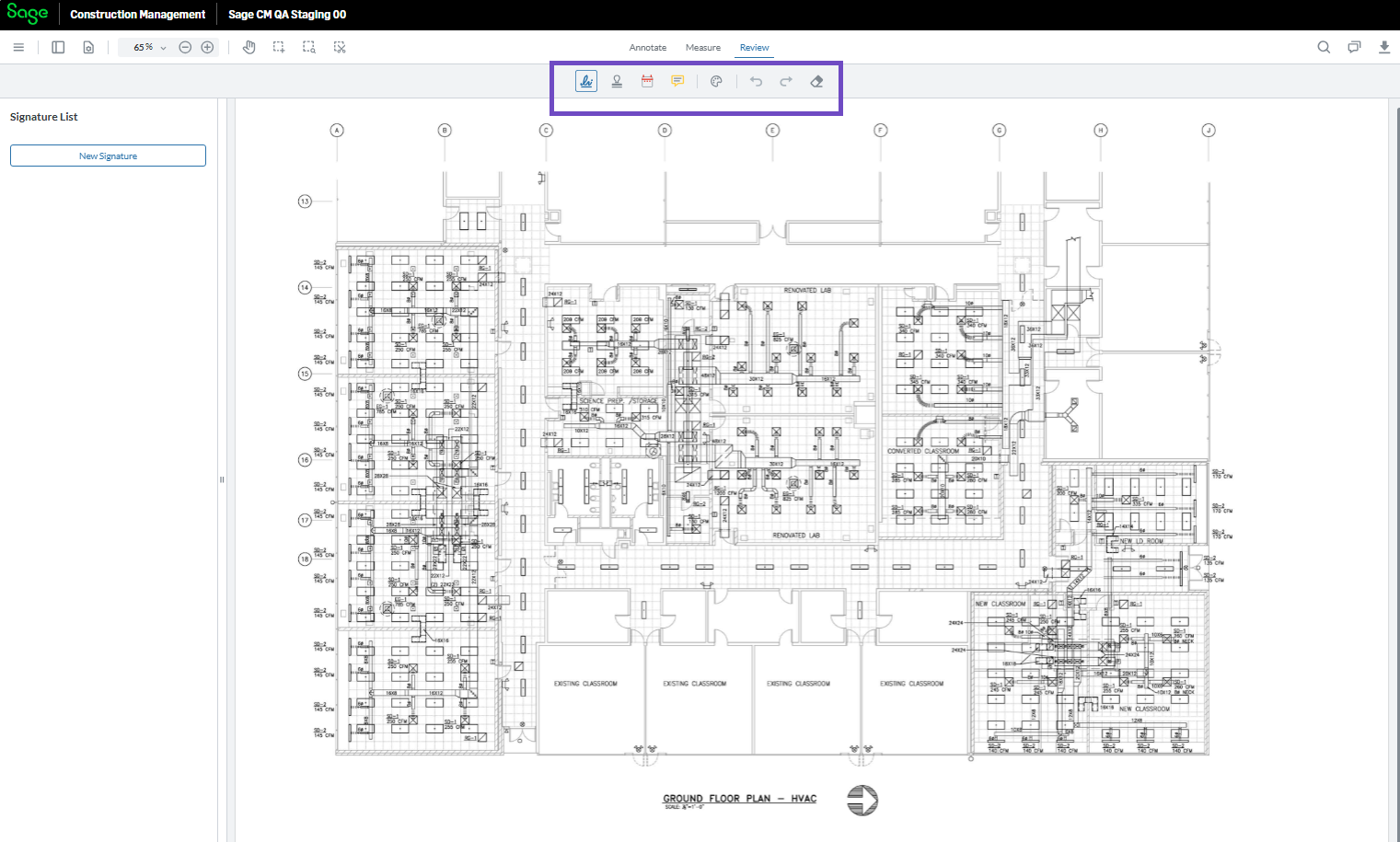 Annotate, Measure, and Review tab options