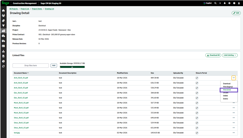 - Select View (New) from the three-dot menu on the right of the required drawing.