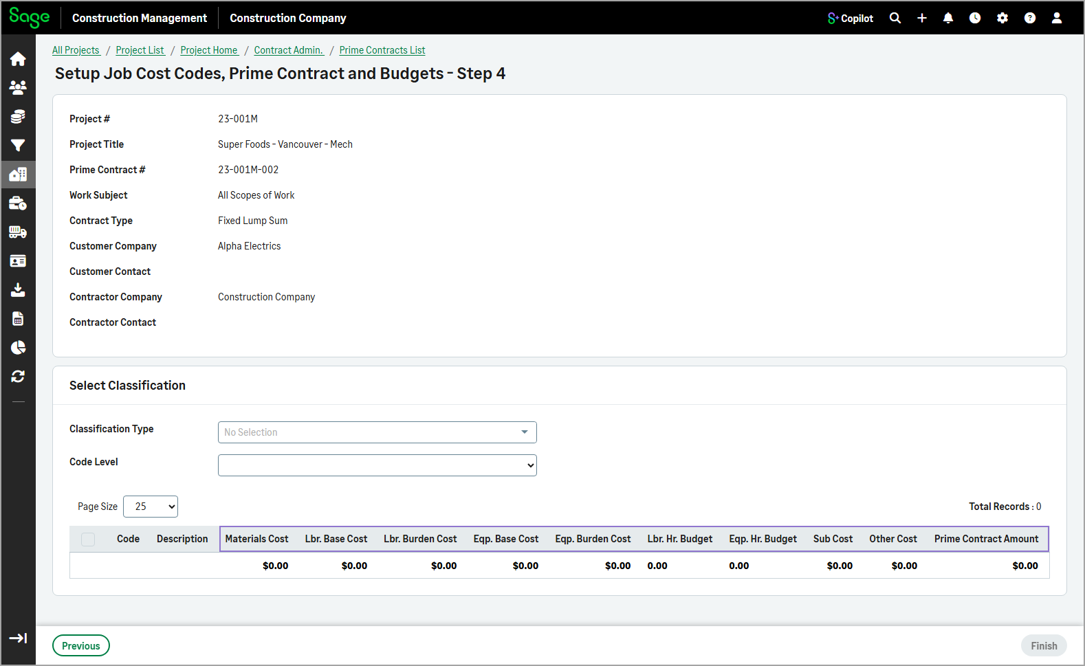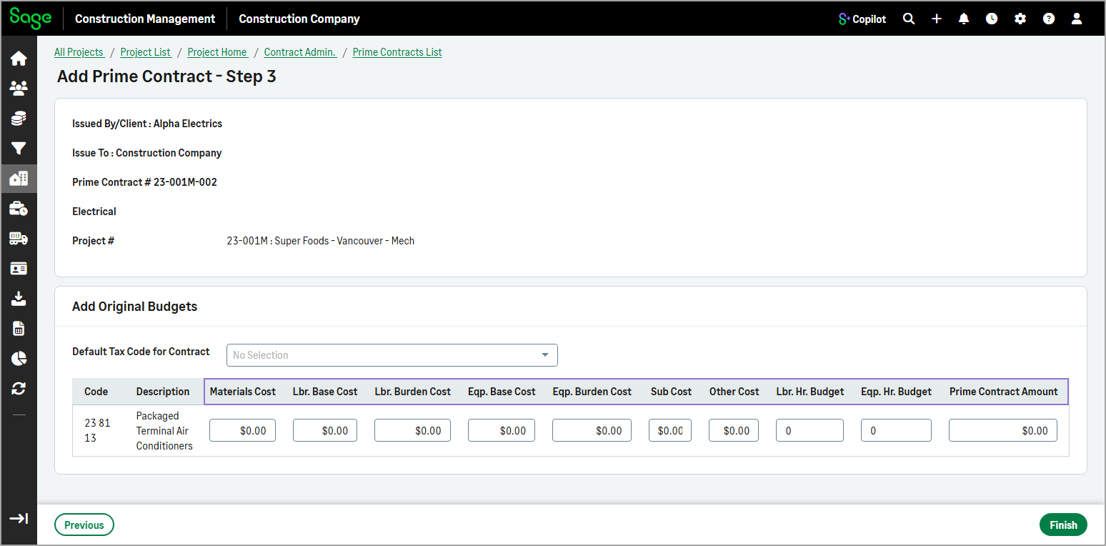 The following cost and budget fields are now available when you create a prime contract manually or through the wizard and add budgets manually: