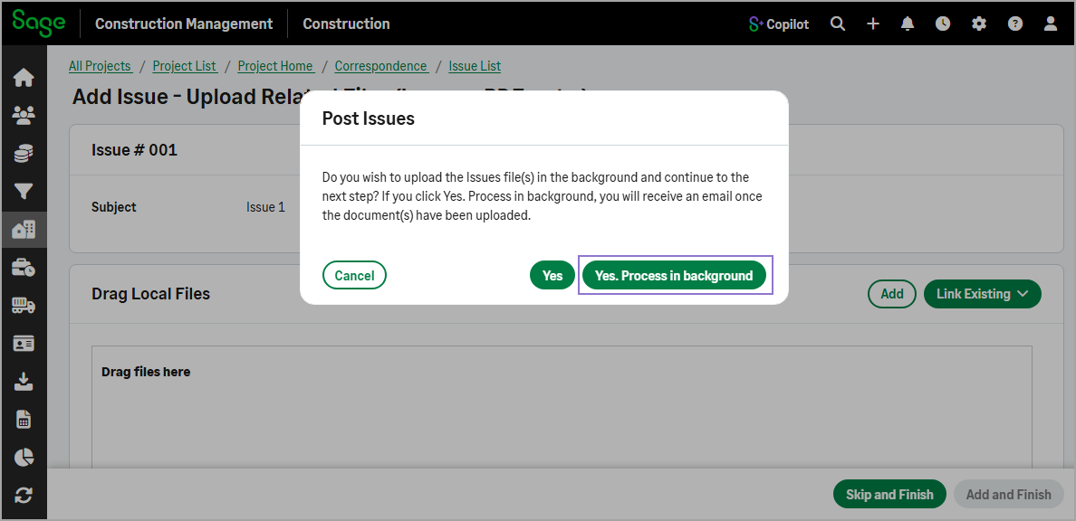 If you select Yes. Process in background, you’ll receive an email confirming whether the files were uploaded successfully after the upload is complete.