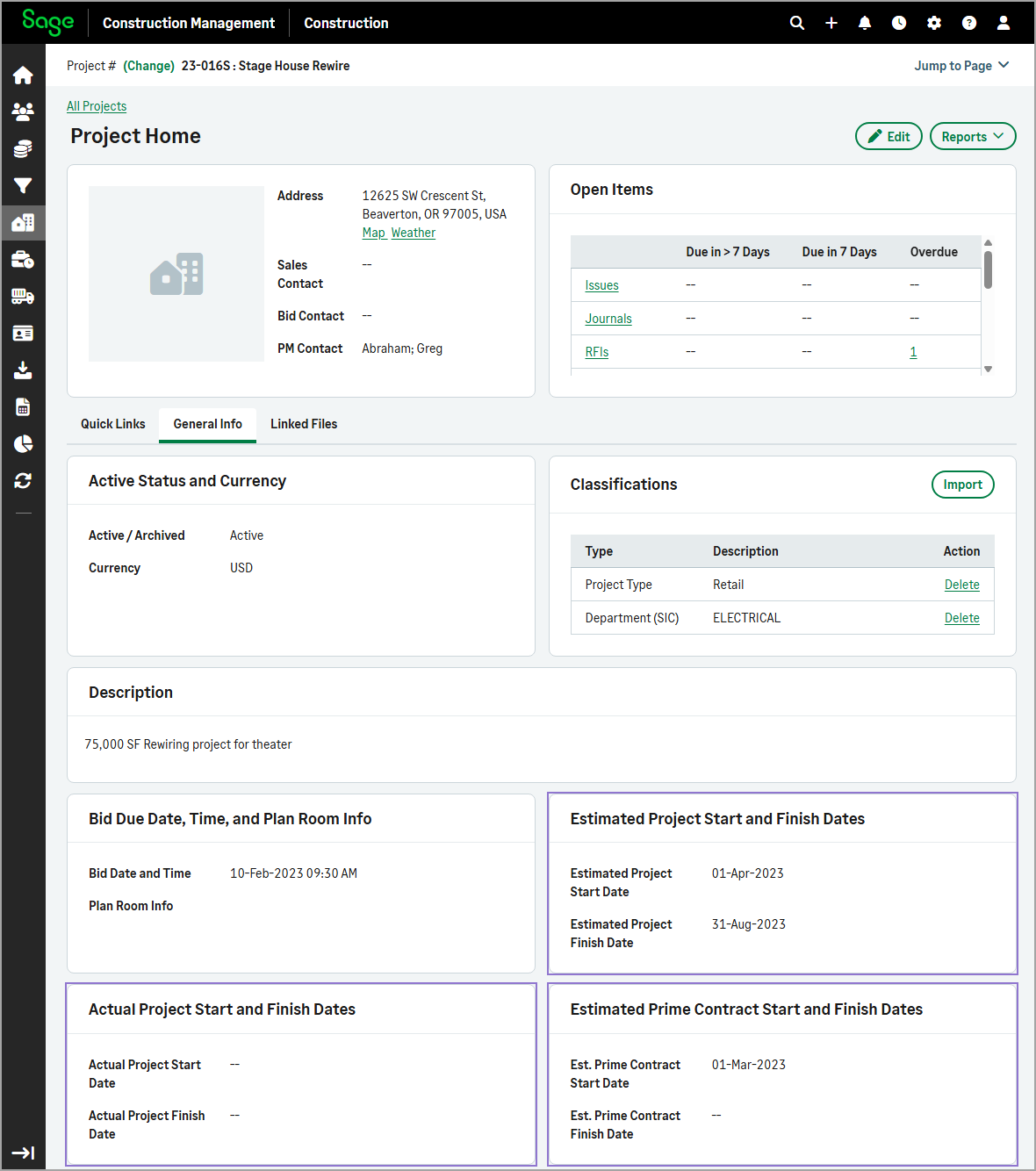 In the General Info tab of projects, the following sections have been renamed for clarity: