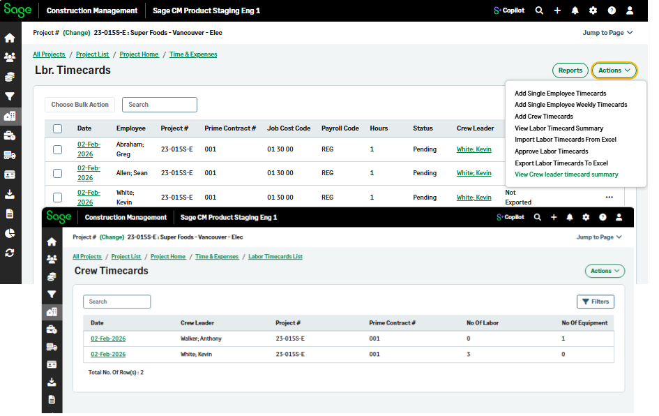 This release introduces enhancements in the labor and equipment timecard workflows to manage crew-level information and timecard details by crew leader.