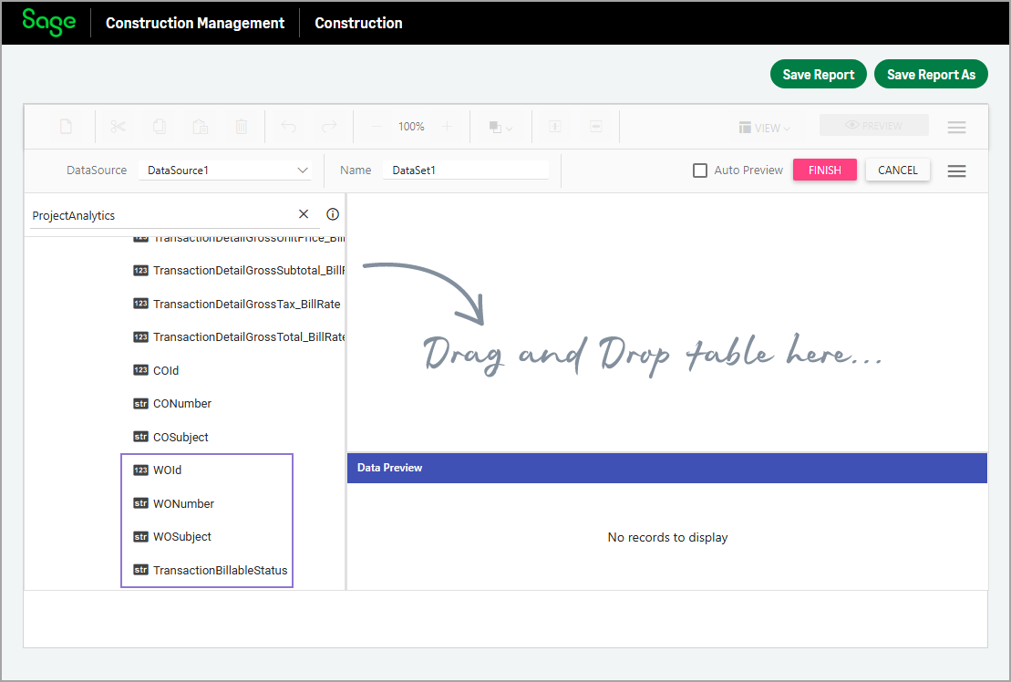 New data fields have been added to the vw_ProjectAnalytics_Commitments and vw_ProjectAnalytics_CostToDate views used in custom log reports. These additions provide greater flexibility and visibility when building reports related to work orders and project costs.